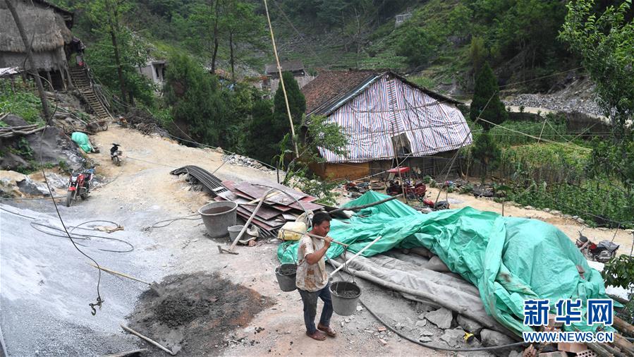 大化瑤族自治縣弄合村弄根屯群眾在建新房(5月13日攝,無人機(jī)照片)。新華社記者周華攝