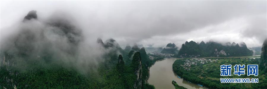 這是在廣西桂林市陽朔縣興坪鎮(zhèn)拍攝的山水風光(5月21日攝,無人機全景照片)。“蒼蒼森八桂,茲地在湘南。江作青羅帶,山如碧玉篸……”一千多年前,唐朝詩人韓愈寫盡桂林山水之美。初夏時節(jié),在廣西桂林市陽朔縣興坪鎮(zhèn),藍天白云下,煙雨朦朧中,桂林山水盡顯秀美。新華社記者 周華 攝