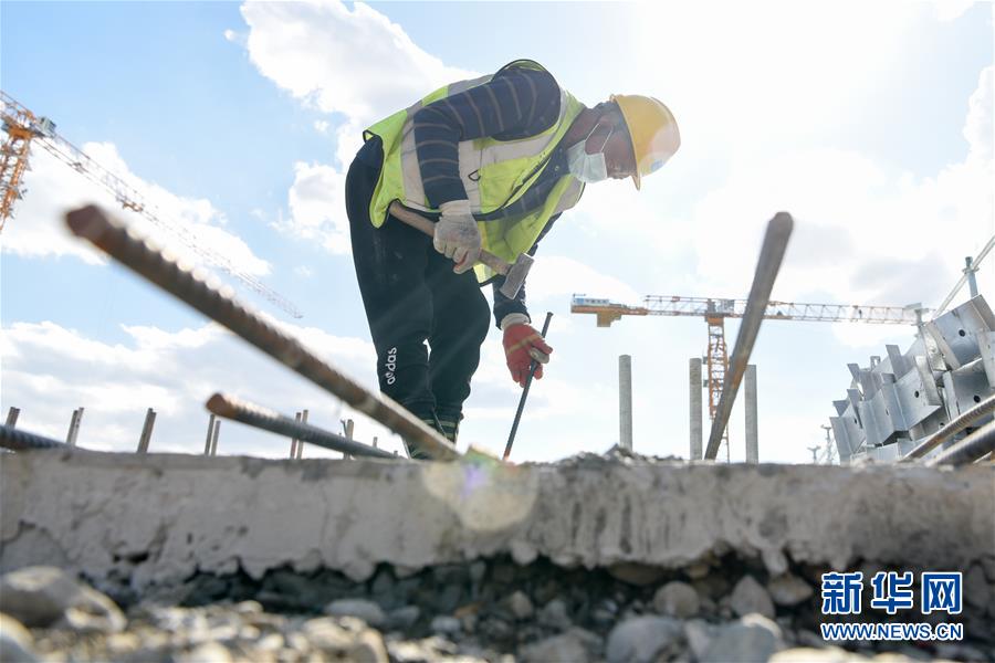 5月23日,工人在烏魯木齊機場改擴(kuò)建工程施工現(xiàn)場作業(yè)。新華社記者丁磊攝