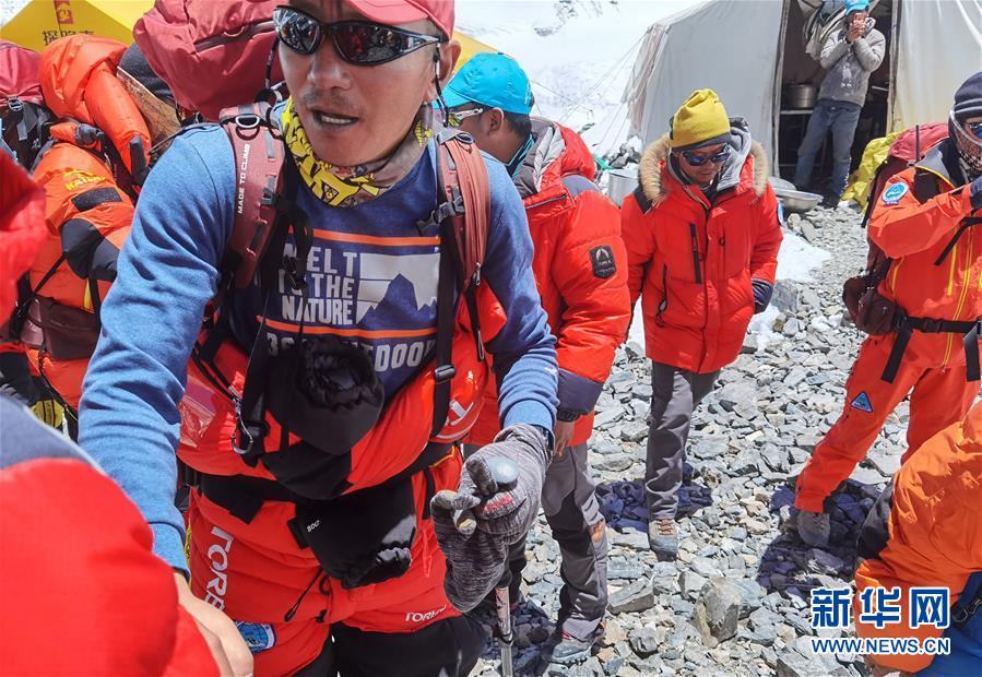 5月24日,2020珠峰高程測(cè)量登山隊(duì)部分人員從海拔6500米的前進(jìn)營(yíng)地出發(fā)。新華社特約記者拉巴攝