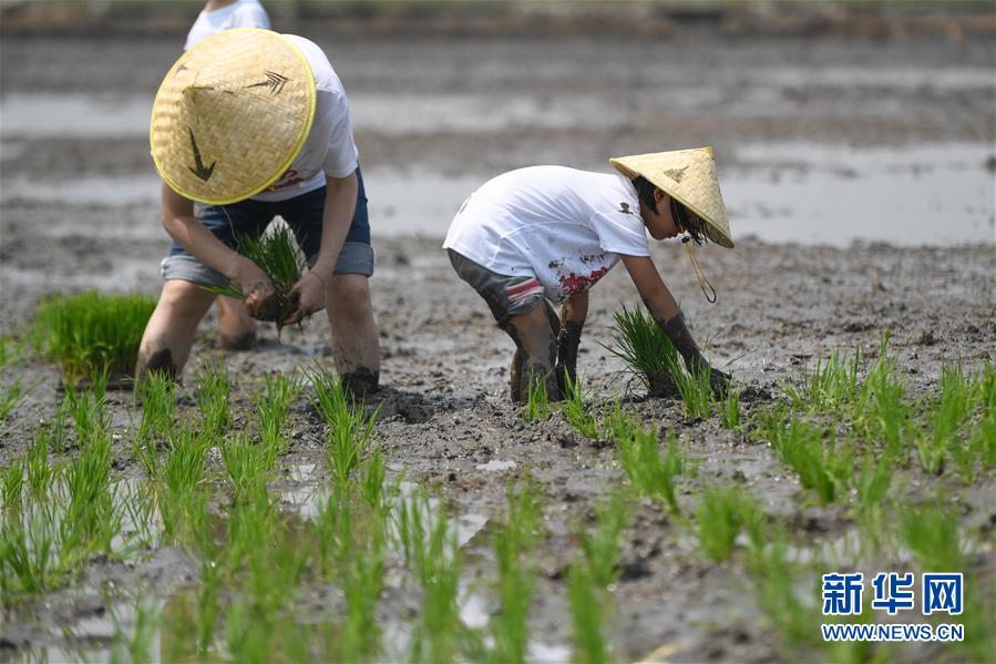 5月24日,小朋友與家長(zhǎng)在稻田里參加親子插秧比賽。當(dāng)日,十余名小朋友在家長(zhǎng)的帶領(lǐng)下來(lái)到浙江省湖州市吳興區(qū)八里店鎮(zhèn)尹家圩糧油植保農(nóng)機(jī)專(zhuān)業(yè)合作社的稻田中,參加親子插秧、稻田捉魚(yú)等農(nóng)事體驗(yàn)活動(dòng)。新華社記者黃宗治攝