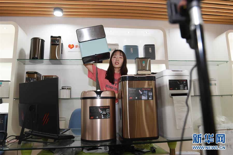 5月25日,在浙江省臺州市黃巖區(qū),一家塑料制品生產(chǎn)企業(yè)的工作人員在直播銷售智能垃圾桶。近年來,浙江省臺州市黃巖區(qū)的家居塑料制品生產(chǎn)企業(yè)加強(qiáng)與國內(nèi)電商平臺的對接,大力開拓線上市場,根據(jù)線上市場反饋,提升產(chǎn)品研發(fā)針對性,創(chuàng)新產(chǎn)品類型,為企業(yè)轉(zhuǎn)型升級注入活力。新華社記者翁忻旸攝
