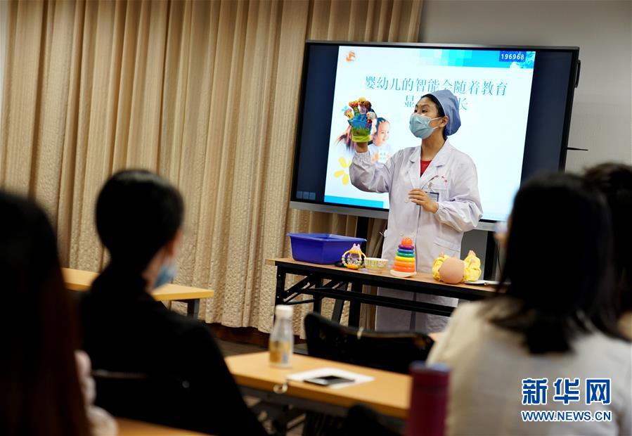 5月26日,中國福利會(huì)國際和平婦幼保健院健康教育科孕婦學(xué)校的醫(yī)生在上課。新華社記者 劉穎 攝