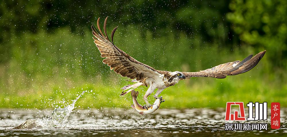 魚鷹俯沖入水捕魚 伺機(jī)而動(dòng)“快準(zhǔn)狠”