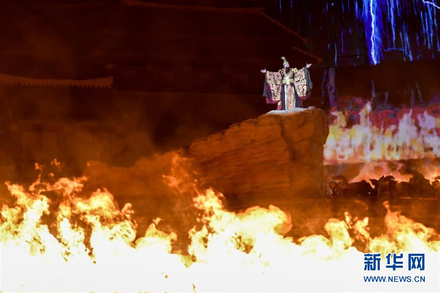 5月28日,演員在大型實(shí)景神話音樂劇《昆侖之約》中表演。5月28日,新疆文化旅游新名片——大型實(shí)景神話音樂劇《昆侖之約》在烏魯木齊南山景區(qū)上演。該劇融自然山水之美、藝術(shù)文化之光、現(xiàn)代科技之新于一體,為市民獻(xiàn)上一場視聽盛宴。新華社記者丁磊攝