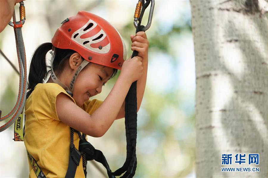 5月31日,小朋友在北京朝陽(yáng)公園體驗(yàn)戶外運(yùn)動(dòng)。