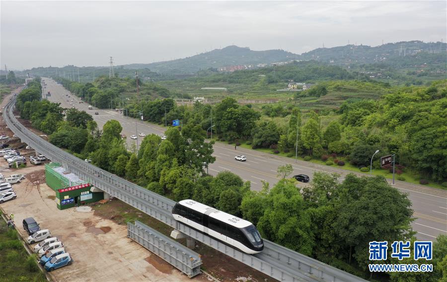 6月3日,一臺“云巴”在專用運(yùn)行軌道上進(jìn)行調(diào)試(無人機(jī)照片)。近日,重慶市首條“云巴”示范線項目在重慶璧山區(qū)正式亮相。此次發(fā)布的“云巴”采用電能驅(qū)動,具有轉(zhuǎn)彎半徑小、爬坡能力強(qiáng)、噪音低、安全性高、建設(shè)成本低、建造周期短等優(yōu)勢,能為乘客提供更智能、舒適、便捷的出行體驗。據(jù)介紹,璧山區(qū)“云巴”示范線項目自2019年8月開建,線路正線全長15.4km,共設(shè)車站15座,預(yù)計2020年9月全線通車。新華社記者劉潺攝。