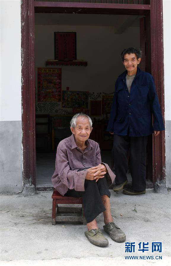 在廣西環(huán)江毛南族自治縣下南鄉(xiāng)下塘村上眉屯,譚廣田(右)和父親譚運(yùn)日在家門口(5月23日攝)。新華社記者陸波岸攝。