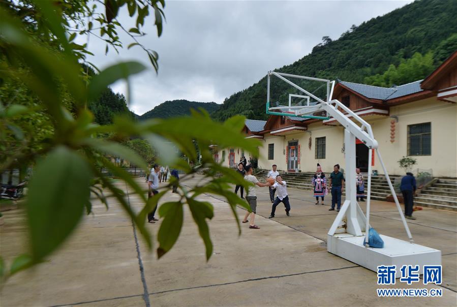 6月3日,人們在永州市新田縣兩江口村易地搬遷集中安置點內(nèi)打籃球。新華社記者趙眾志攝。