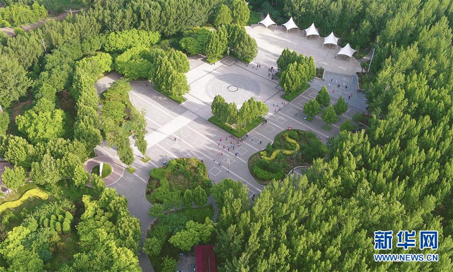 這是6月5日拍攝的文安縣森林公園(無人機照片)。近年來,河北省文安縣將植樹造林與城市建設(shè)有機融合,探索“政府引導(dǎo)、企業(yè)運作、多方共贏”的市場化植樹造林新模式,大規(guī)模推進(jìn)國土綠化,打造人與自然和諧共生的優(yōu)美生態(tài)環(huán)境,構(gòu)筑京津雄綠色屏障。截至目前,該縣森林覆蓋率已經(jīng)達(dá)到33%,城區(qū)綠地面積達(dá)到36.48%。新華社記者李曉果攝。