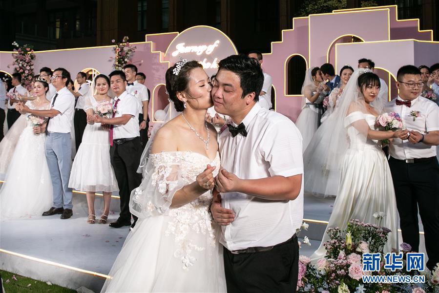 6月6日,新人在海南博鰲樂城國際醫(yī)療旅游先行區(qū)參加集體婚禮。 新華社記者 張麗蕓 攝
