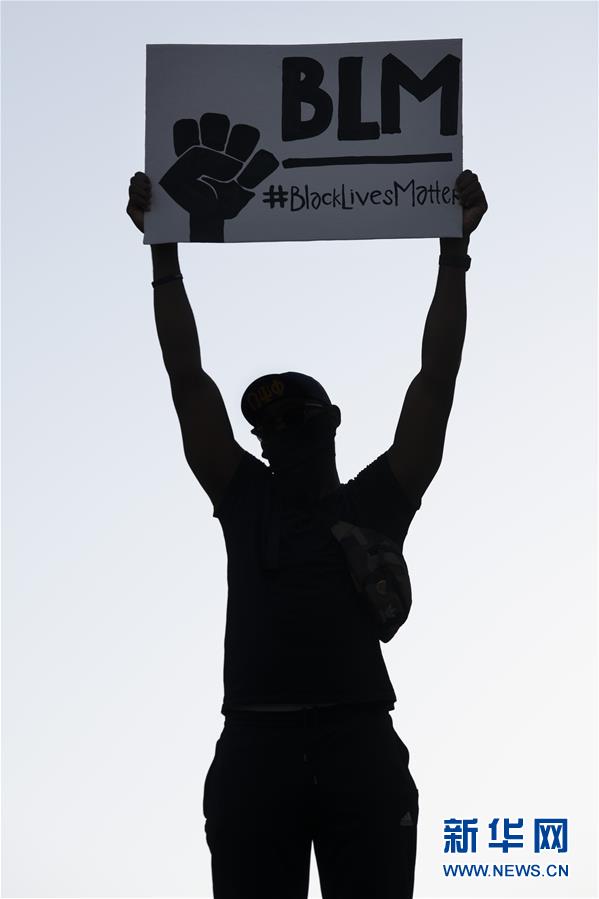 6月8日,一名男子在美國華盛頓白宮附近手舉“黑人的命也是命”的抗議標(biāo)語。新華社記者劉杰攝