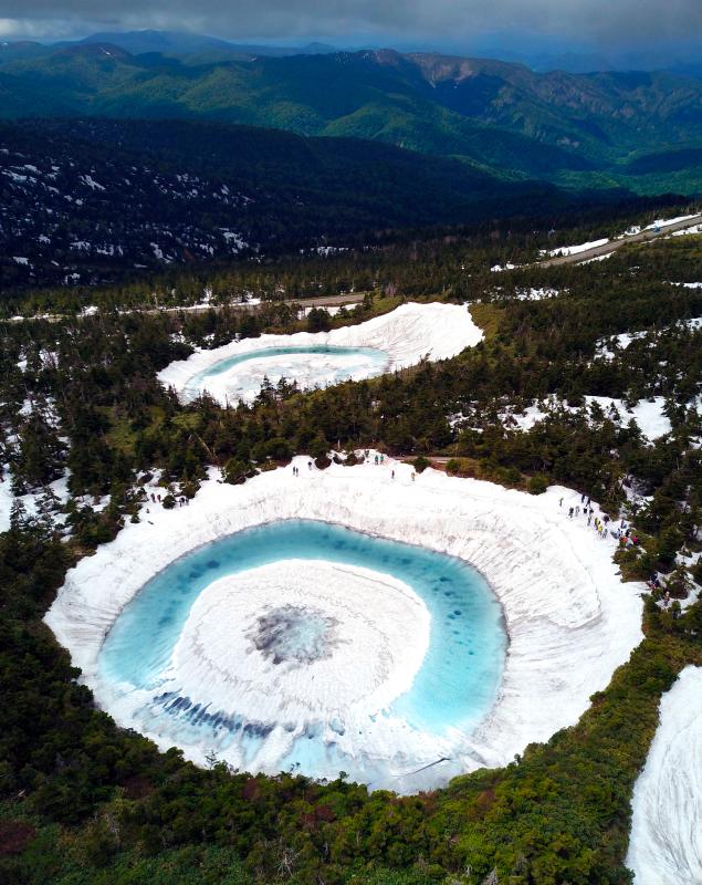 當(dāng)?shù)貢r間2020年6月8日,日本,在橫跨巖手縣與秋田縣的八幡平山頂附近的“鏡沼”,伴隨著“鏡沼”的積雪從外側(cè)逐漸融化,外圍的碧藍(lán)色湖水與中心部的潔白積雪相映成趣,呈現(xiàn)出獨(dú)特的類似“龍眼”的景象。據(jù)悉,八幡平“龍眼”奇景只在每年5月下旬至6月初的雪融期間短暫出現(xiàn)。