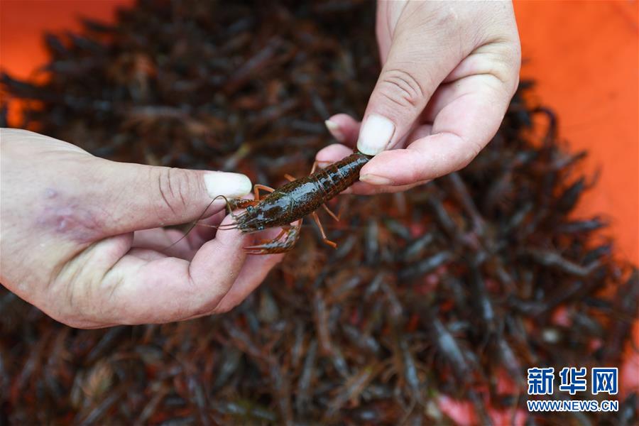 6月9日,在宿遷市宿城區(qū)中揚(yáng)鎮(zhèn)一家淺水藕套養(yǎng)小龍蝦合作社,負(fù)責(zé)人王乃國(guó)在挑選蝦苗,準(zhǔn)備出售給其他養(yǎng)殖戶(無(wú)人機(jī)照片)。新華社記者季春鵬攝