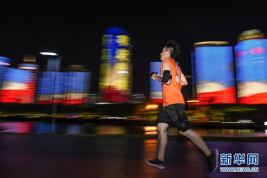 一位市民在??谌f綠園夜跑(5月15日拍攝)。近年來,夜跑成為越來越多都市人熱衷的健身方式之一。在海南???,每當夜幕降臨,“夜跑族”來到??谌f綠園、世紀公園等夜跑場所跑步,用一身酣暢淋漓的汗水擺脫白天工作中的壓力,享受跑步帶來的歡愉。新華社記者 蒲曉旭 攝