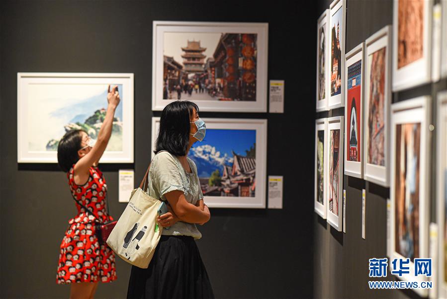 6月13日,觀眾在位于海口的海南省博物館觀看“地球諧音——世界文化遺產攝影藝術展”。新華社記者蒲曉旭攝。