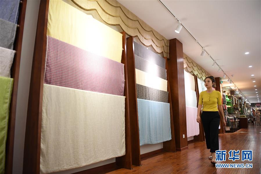 6月12日,天運夏布會館負責(zé)人唐藝在檢查展廳內(nèi)展示的夏布樣品。新華社記者 唐奕 攝