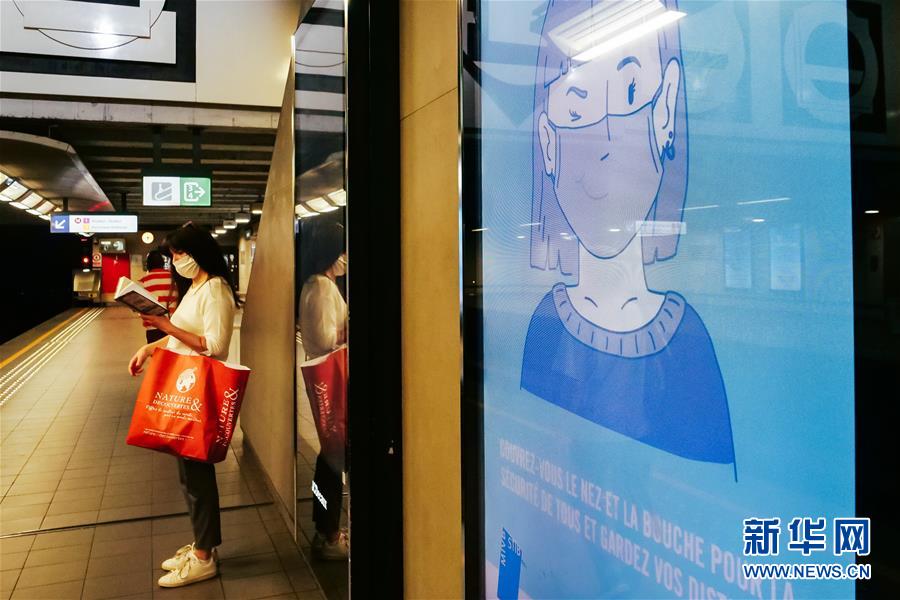 6月13日,一名戴口罩的女子在比利時(shí)布魯塞爾一處地鐵站候車。比利時(shí)文化、體育和宗教活動(dòng)自6月8日起恢復(fù),民眾可在國內(nèi)旅游。從15日起,比利時(shí)將向歐盟和申根區(qū)國家以及英國恢復(fù)開放邊境等。新華社記者 張鋮 攝