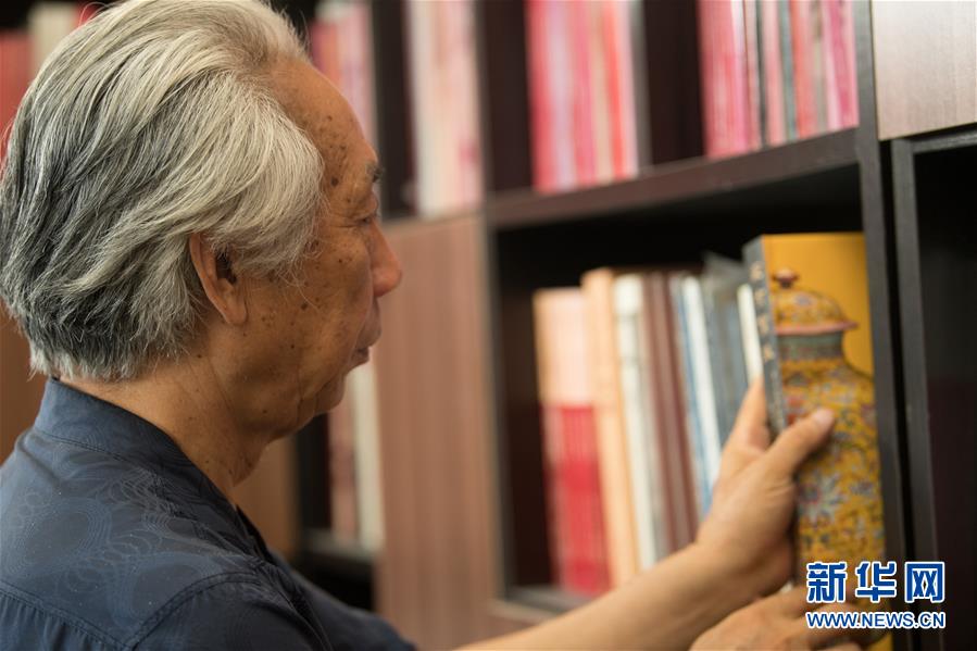 6月17日,在位于浙江慈溪的工作室,聞長(zhǎng)慶在查閱關(guān)于古代陶瓷的書籍。