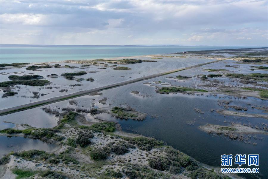 6月18日拍攝的新疆烏倫古湖國(guó)家濕地公園(無人機(jī)照片)。烏倫古湖國(guó)家濕地公園位于新疆阿勒泰地區(qū)福海縣城以西,由烏倫古湖和吉力湖兩部分組成。烏倫古湖濕地公園是遷徙候鳥飛越天山和阿爾泰山的“能量補(bǔ)充站”,良好的濕地生態(tài)吸引著大量遷徙鳥類在此集結(jié)成群,繁殖棲息,成為一道靚麗的風(fēng)景線。新華社記者 沙達(dá)提 攝