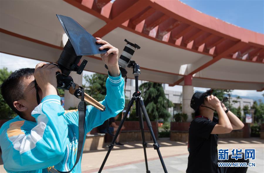 6月21日,在四川省布拖縣城,攝影師在拍攝日環(huán)食。“日環(huán)食”天文景觀于6月21日“夏至日”下午在天宇上演。新華社記者 江宏景 攝