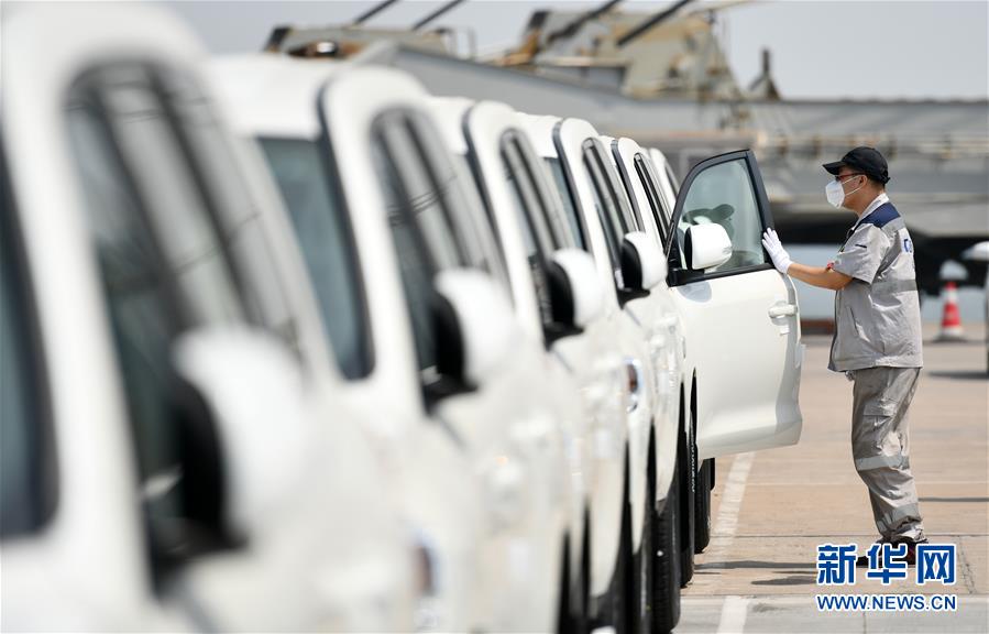 6月21日,司機(jī)在天津港環(huán)球滾裝碼頭接卸車輛后關(guān)門。當(dāng)日,裝載著數(shù)千輛平行進(jìn)口汽車的滾裝船順利??刻旖蚋郗h(huán)球滾裝碼頭,共接卸2600余輛豐田、日產(chǎn)等品牌的平行進(jìn)口汽車。今年前5個月,天津港集團(tuán)完成貨物吞吐量1.68億噸,集裝箱吞吐量689.5萬標(biāo)準(zhǔn)箱,分別同比增長1%和1.6%。新華社記者李然攝