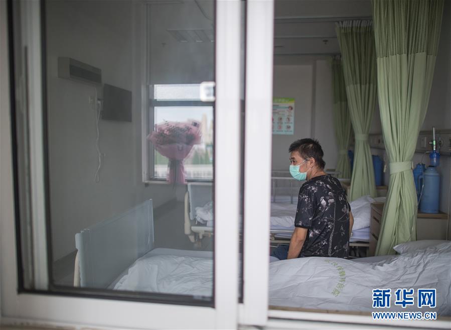 6月17日,胡定江在病房等待出院,窗臺(tái)的鮮花是他準(zhǔn)備在出院時(shí)送給醫(yī)護(hù)人員的。用過ECMO(人工膜肺)等設(shè)備,經(jīng)過多省市專家的聯(lián)合救治,在院100多天,先后經(jīng)歷了ICU、過渡病房、隔離病房、普通病房的40歲新冠肺炎康復(fù)患者胡定江,目前康復(fù)良好,經(jīng)專家研判,于6月17日出院。新華社記者肖藝九攝