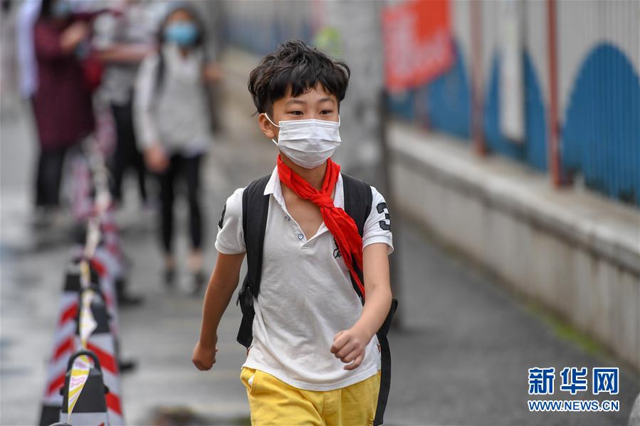 當日,吉林省吉林市城區(qū)初中一、二年級,小學四至六年級復課。吉林市教育局要求各學校組織學生錯峰入校、放學、就餐和參加體育活動,確保校園疫情防控安全。新華社記者張楠攝