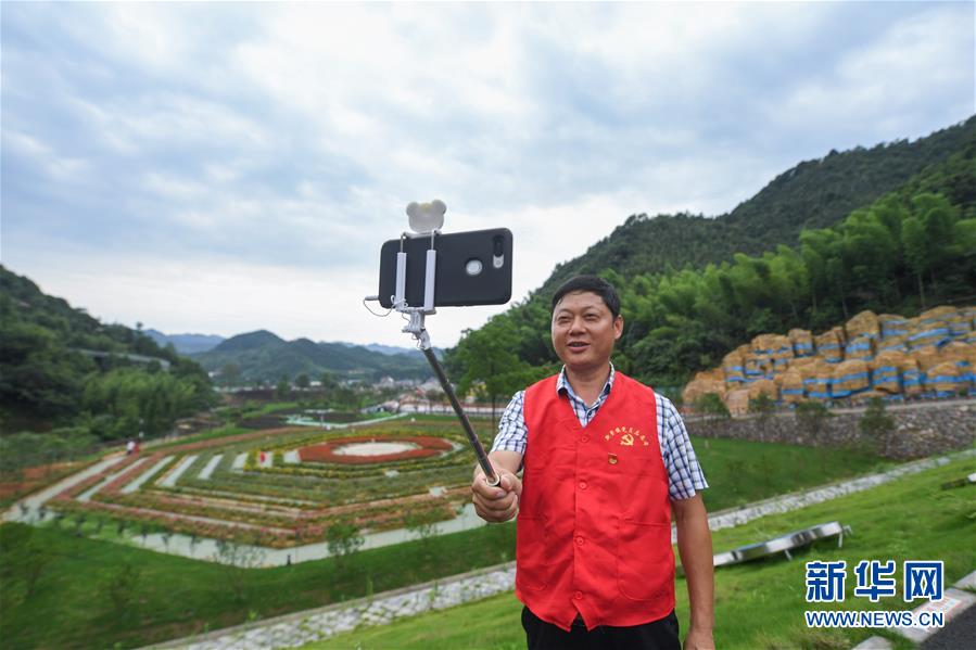 6月29日,新登鎮(zhèn)上山村黨總支書(shū)記汪衛(wèi)中通過(guò)手機(jī)直播推介當(dāng)?shù)剜l(xiāng)村旅游景點(diǎn)。近日,浙江省杭州市富陽(yáng)區(qū)新登鎮(zhèn)來(lái)自不同領(lǐng)域、有著不同身份的基層黨員們紛紛化身網(wǎng)絡(luò)“主播”,借助抖音、朋友圈等網(wǎng)絡(luò)載體,傾情推介家鄉(xiāng)的山鄉(xiāng)風(fēng)貌、山鄉(xiāng)味道、山鄉(xiāng)民俗、山鄉(xiāng)風(fēng)情。新華社記者徐昱攝