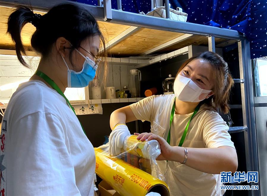 7月1日,在北理工學(xué)生宿舍,兩名輔導(dǎo)員在為畢業(yè)生打包行李。6月29日起,北京理工大學(xué)教職員工開(kāi)始為2020屆6000多名需要打包的畢業(yè)生集中進(jìn)行行李打包、郵寄和留置物品存放工作。經(jīng)過(guò)提前與畢業(yè)生“一對(duì)一”溝通,老師們耐心細(xì)致地通過(guò)手機(jī)“直播”打包行李的全過(guò)程,與每一個(gè)同學(xué)認(rèn)真核對(duì)其個(gè)人物品,細(xì)心收納擺放、整理密封、搬運(yùn)寄送,讓不能返校的畢業(yè)生們安心、放心。新華社記者魏夢(mèng)佳攝