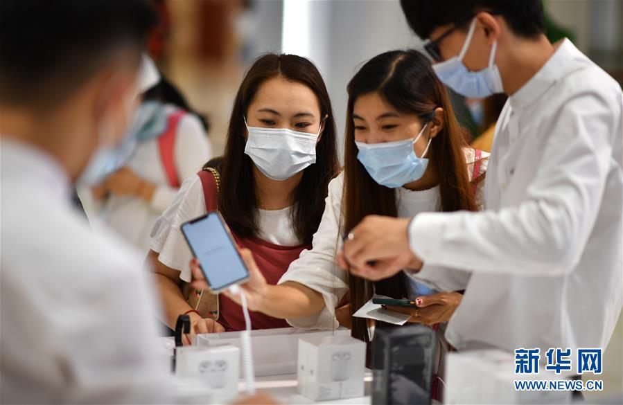 7月1日,顧客在??谌赵聫V場(chǎng)免稅店選購手機(jī)等電子消費(fèi)產(chǎn)品。當(dāng)日,海南開始實(shí)施調(diào)整后的離島免稅購物政策。海南離島旅客每年每人免稅購物額度提高至10萬元,電子消費(fèi)產(chǎn)品等7類新增商品開售。新華社記者郭程攝