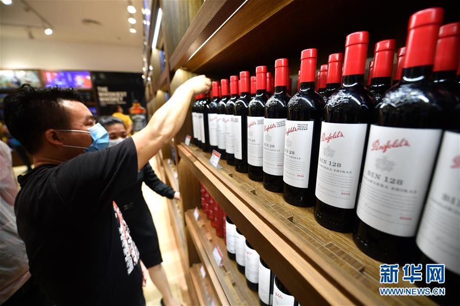 7月1日,顧客在??谌赵聫V場(chǎng)免稅店選購(gòu)酒類商品。當(dāng)日,海南開始實(shí)施調(diào)整后的離島免稅購(gòu)物政策。海南離島旅客每年每人免稅購(gòu)物額度提高至10萬(wàn)元,電子消費(fèi)產(chǎn)品等7類新增商品開售。新華社記者郭程攝