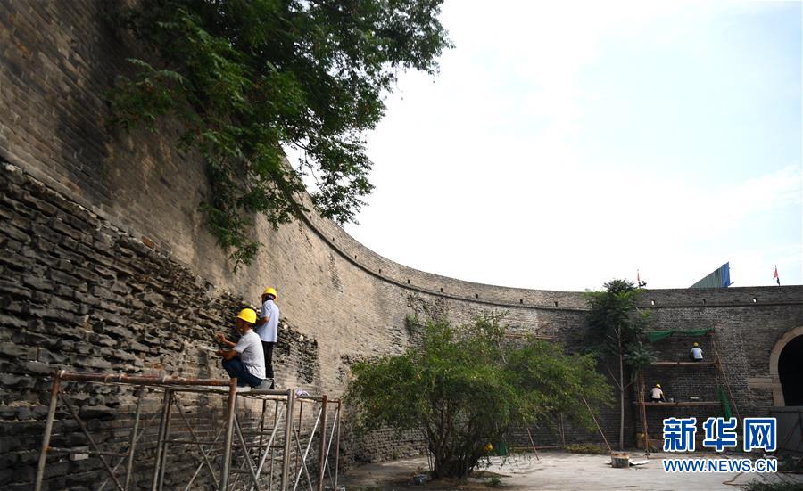 7月2日,工作人員在永年廣府古城修繕城墻。經(jīng)國家文物局和河北省文物局批準,河北永年廣府古城修繕工程已全面啟動。在文物專家全程參與下,按照“不改變文物原狀”原則進行修繕,預(yù)計2021年4月底完工。永年廣府古城擁有華北地區(qū)保存最完整的古城墻,現(xiàn)為全國重點文物保護單位。新華社記者王曉攝