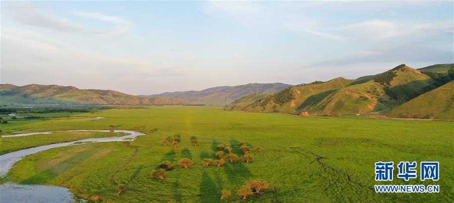 烏蘭毛都草原景色(7月1日無人機(jī)照片)。盛夏時(shí)節(jié),內(nèi)蒙古興安盟科爾沁右翼前旗的烏蘭毛都草原綠意盎然,風(fēng)景醉人。烏蘭毛都草原地處大興安嶺南麓,屬丘陵山地草原,風(fēng)光獨(dú)特。新華社記者徐欽攝