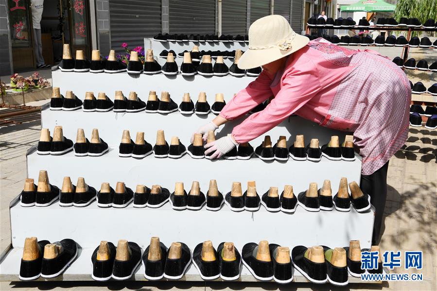 7月2日,臨夏縣百利布鞋加工農(nóng)民專業(yè)合作社員工在擺放布鞋。甘肅省臨夏回族自治州臨夏縣將布鞋加工定為重點扶持發(fā)展的產(chǎn)業(yè),采用“政府+公司+貧困戶”的產(chǎn)業(yè)扶貧模式,由政府主導(dǎo)、企業(yè)出資,在貧困村建設(shè)“扶貧車間”,吸納貧困群眾從事布鞋加工產(chǎn)業(yè)增加收入。截至2019年底,當(dāng)?shù)夭夹庸て髽I(yè)和加工戶遍及近百個行政村,從業(yè)人員達(dá)到4000多人,累計生產(chǎn)布鞋600多萬雙,實現(xiàn)銷售收入2.32億元。新華社記者范培珅攝