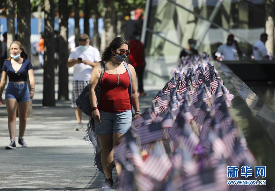 7月4日,參觀者在當日重新開放的美國紐約“9·11”世貿(mào)中心遺址參觀。當日是美國獨立日,美國多地疫情仍面臨嚴峻形勢。美國約翰斯·霍普金斯大學實時統(tǒng)計數(shù)據(jù)顯示,美國累計新冠確診病例4日已超過280萬例。新華社記者王迎攝