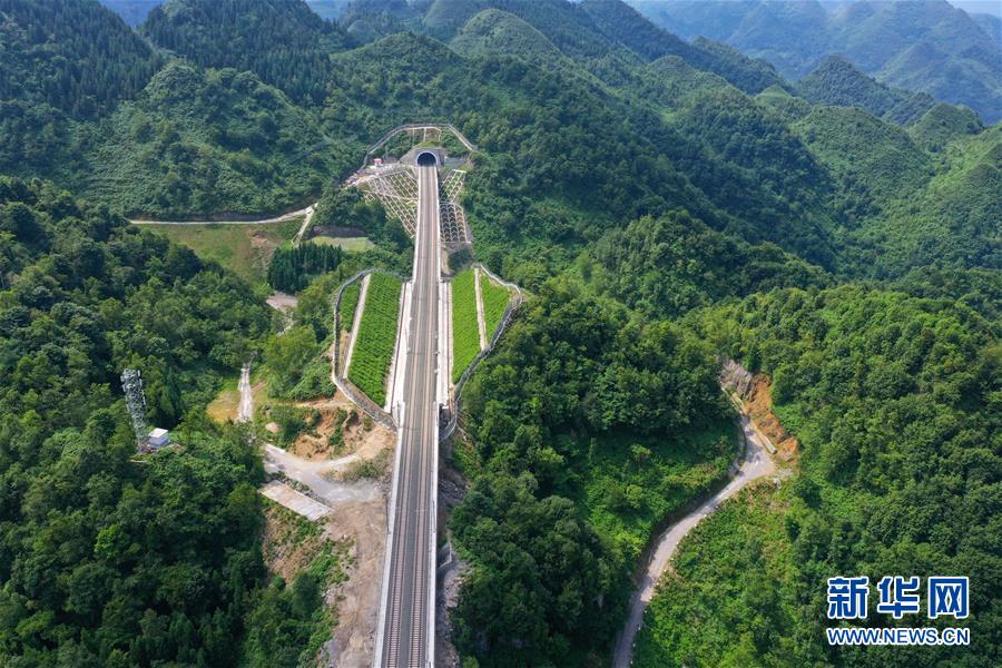 7月6日拍攝的安六鐵路巖腳隧道(無人機(jī)照片)。當(dāng)日,新建貴州安六鐵路(安順至六盤水)聯(lián)調(diào)聯(lián)試工作進(jìn)入收尾階段,開通前的各項(xiàng)準(zhǔn)備工作已基本就緒。安六鐵路線路全長約125公里,設(shè)計(jì)時(shí)速250公里,為國家I級雙線客運(yùn)專線。建成投用后,貴陽至六盤水的鐵路旅行時(shí)間可從現(xiàn)在的3.5小時(shí)縮短為1小時(shí)左右,貴州省六盤水市將全面接入全國高鐵網(wǎng)。新華社記者劉續(xù)攝