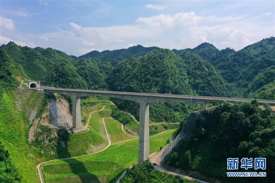 7月6日拍攝的安六鐵路彭家沖一號大橋(無人機(jī)照片)。當(dāng)日,新建貴州安六鐵路(安順至六盤水)聯(lián)調(diào)聯(lián)試工作進(jìn)入收尾階段,開通前的各項(xiàng)準(zhǔn)備工作已基本就緒。安六鐵路線路全長約125公里,設(shè)計(jì)時(shí)速250公里,為國家I級雙線客運(yùn)專線。建成投用后,貴陽至六盤水的鐵路旅行時(shí)間可從現(xiàn)在的3.5小時(shí)縮短為1小時(shí)左右,貴州省六盤水市將全面接入全國高鐵網(wǎng)。新華社記者劉續(xù)攝