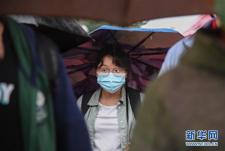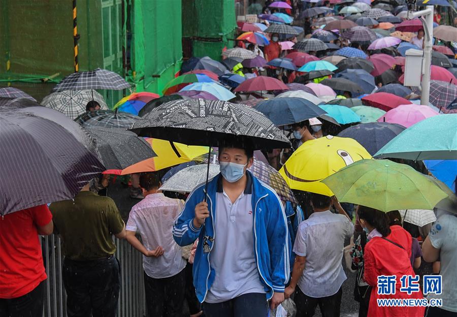 7月7日,在湖北省武漢市東湖中學(xué)考點,考生結(jié)束首場科目考試后走出考場。當(dāng)日,2020年高考拉開帷幕。新華社記者程敏攝
