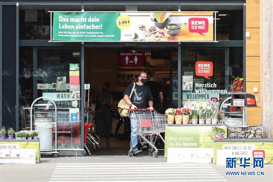 7月7日,一名佩戴口罩的男子離開德國首都柏林的一家超市。針對有地方官員呼吁取消民眾乘坐公交車和在商場購物時須戴口罩的規(guī)定,德國聯(lián)邦政府6日表示,支持延續(xù)“口罩強制令”。4月底,德國全部16個聯(lián)邦州陸續(xù)出臺“口罩強制令”,即居民在乘坐公交車和購物時須佩戴口罩。新華社記者單宇琦攝