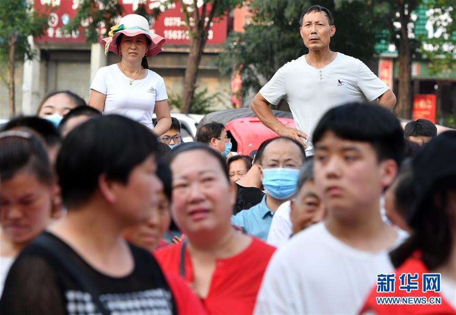 7月8日,在河南省寶豐縣第一高級中學考點,家長在考場外等候考生。當日,全國部分地區(qū)2020年高考結(jié)束。新華社記者李嘉南攝
