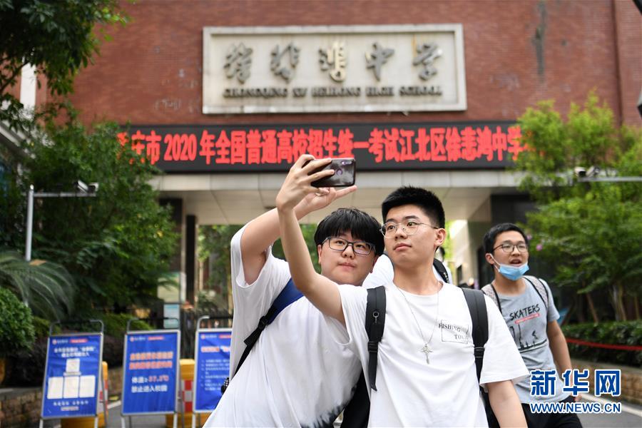 7月8日,在重慶市徐悲鴻中學考點,考生在考試結(jié)束后在校門口合影。當日,全國部分地區(qū)2020年高考結(jié)束。新華社記者唐奕攝