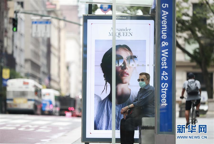 7月8日,一名男子在紐約第五大道的公交車站等車。美國約翰斯·霍普金斯大學8日發(fā)布的新冠疫情最新統(tǒng)計數據顯示,美國累計確診病例超過300萬例。數據顯示,截至美國東部時間8日11時34分(北京時間23時34分),美國累計確診病例3016515例,累計死亡病例131594例。新華社記者王迎攝