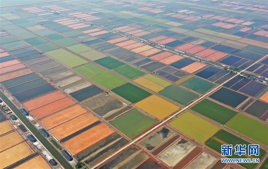 7月9日拍攝的唐山市曹妃甸區(qū)南堡鹽場鹽田(無人機照片)。在我國長蘆鹽區(qū)海鹽生產(chǎn)基地之一的河北省唐山市曹妃甸區(qū)南堡鹽場,一年一度的春鹽收獲工作即將結束,今年南堡鹽場的春鹽產(chǎn)量預計可達72萬噸。新華社記者楊世堯攝