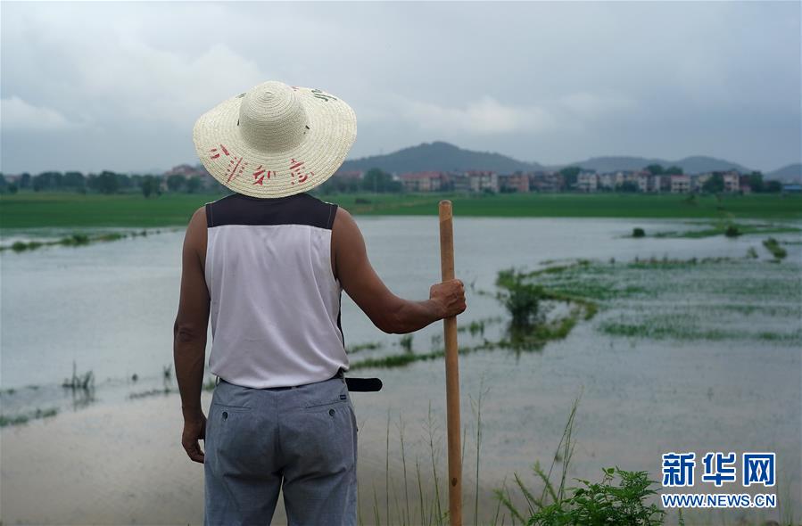 7月9日,邵忠如在圩堤上觀察水情,不遠(yuǎn)處就是他的村子。