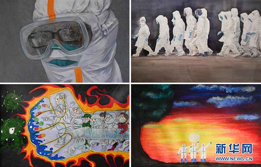 這是在吉林省抗疫主題美術(shù)·攝影作品展上展出的部分作品(拼版照片,7月11日攝)。近日,“大愛(ài)無(wú)疆——吉林省抗疫主題美術(shù)·攝影作品展”在吉林省工藝美術(shù)館與觀眾見(jiàn)面。展覽共展出抗擊新冠肺炎疫情主題書法、國(guó)畫、油畫、攝影等作品367件(組)。新華社記者 許暢 攝