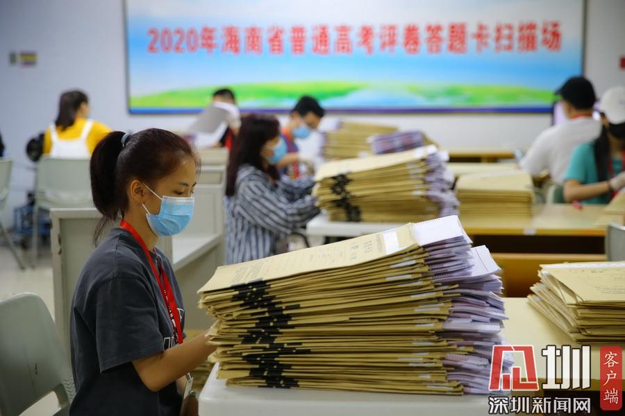 2020年7月13日,在海南師范大學(xué)高考評(píng)卷場(chǎng),工作人員仔細(xì)拆封考卷并進(jìn)行掃描入電腦,整個(gè)過(guò)程井然有序。在評(píng)卷現(xiàn)場(chǎng)的入口,除了有武警把守之外,所有工作人員進(jìn)入到評(píng)卷場(chǎng)均有專人使用手柄式金屬探測(cè)器對(duì)其進(jìn)行安檢,并通過(guò)身份證識(shí)別系統(tǒng)中進(jìn)行身份識(shí)別,方可以進(jìn)入。考生答題卡由武警24小時(shí)值守,并實(shí)行嚴(yán)密的視頻監(jiān)控。