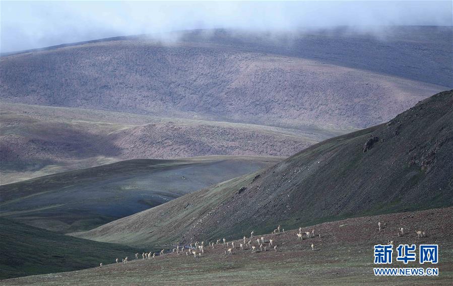 7月7日在可可西里卓乃湖區(qū)域拍攝的一群藏羚羊。目前正值藏羚羊產(chǎn)仔季。來自青海三江源、新疆阿爾金山、西藏羌塘等地的藏羚羊來到位于青海省可可西里腹地、被譽為“藏羚羊大產(chǎn)房”的卓乃湖區(qū)域產(chǎn)仔。新華社記者 薛玉斌 攝