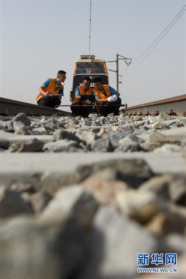 技術(shù)員進(jìn)行鋼軌廓形檢測(7月14日攝)。新華社記者 丁磊 攝