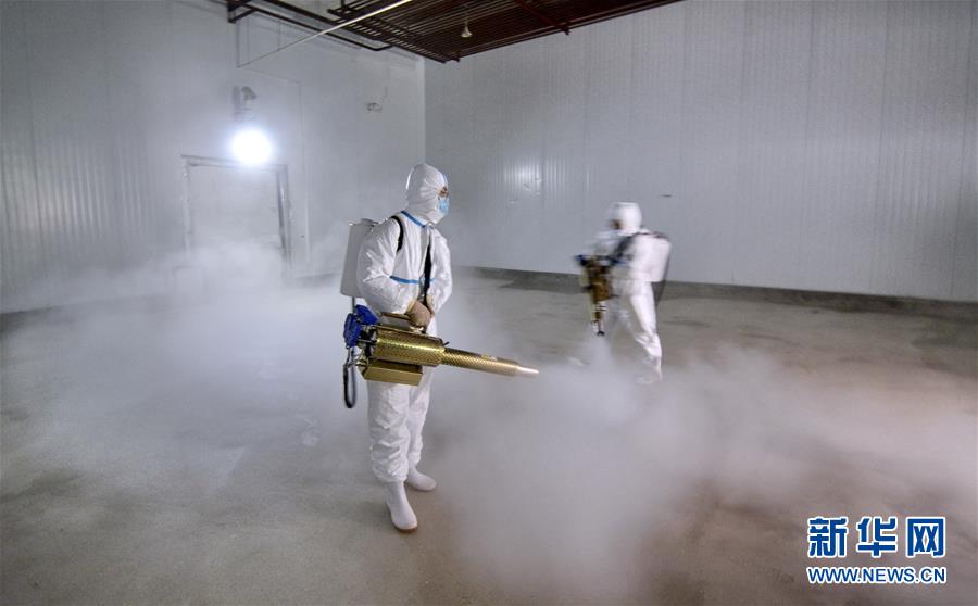 7月14日,北京二商肉類食品集團有限公司員工對肉類冷藏庫房進行全方位消毒。北京二商肉類食品集團有限公司是保障北京肉類市場供應的主要企業(yè)之一。新冠肺炎疫情以來,企業(yè)嚴格實施北京市、農(nóng)業(yè)農(nóng)村部和中國肉類協(xié)會的防疫要求,對進入廠區(qū)的人員、車輛以及原料采購、屠宰分割、產(chǎn)品加工、貯藏運輸、廢棄物收集及污水處理等生產(chǎn)環(huán)節(jié)嚴格防疫,強調(diào)源頭把關(guān)徹底消毒。目前,集團公司下屬多家生豬屠宰加工基地正常運營,保質(zhì)保量供應北京市場需求。新華社記者 李欣 攝